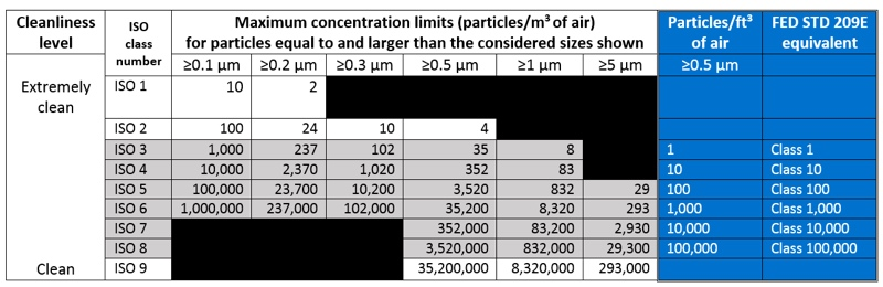 However, the ISO cleanliness level (ISO 8, 7, 6, and 5) gives a hint on